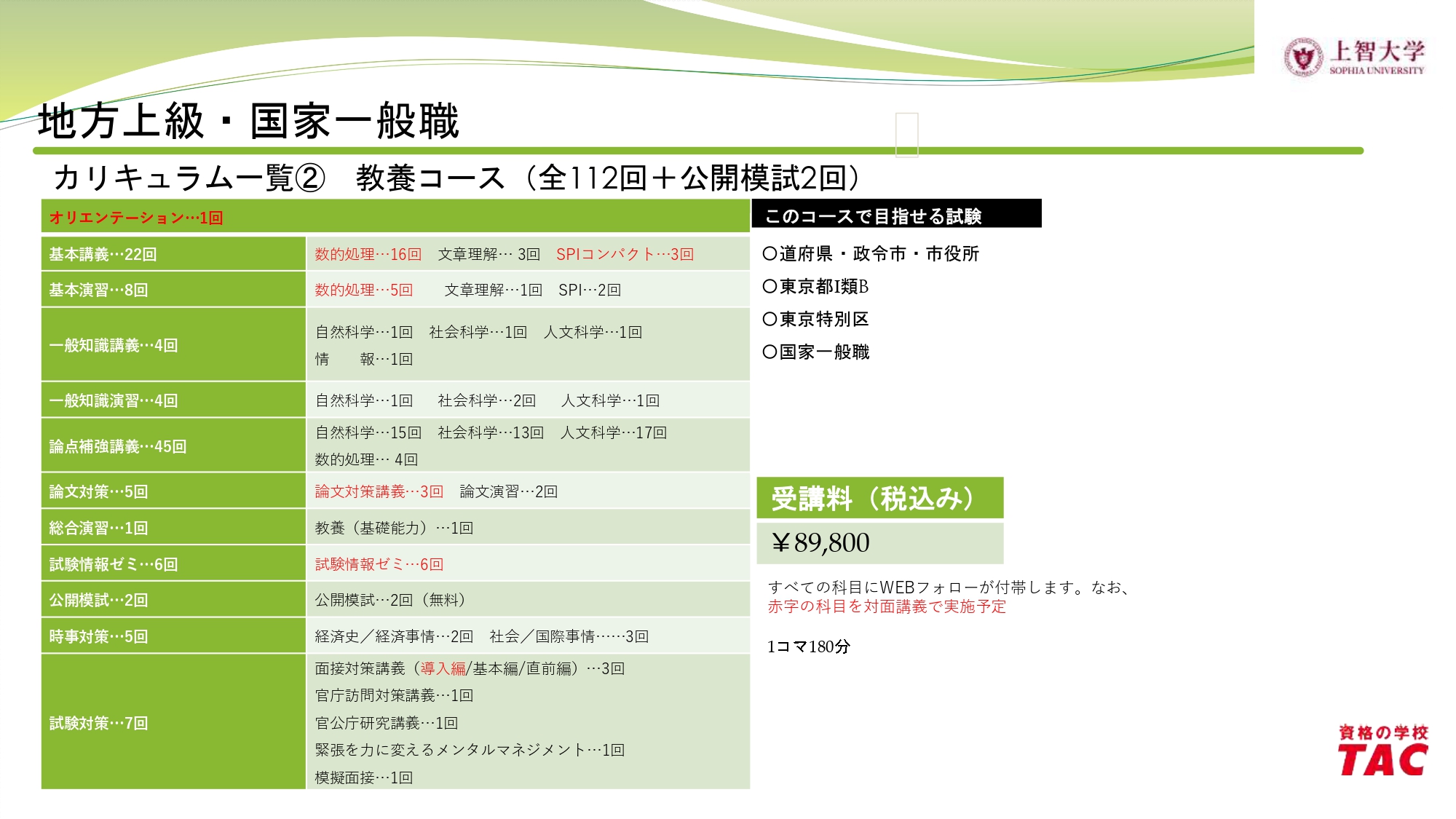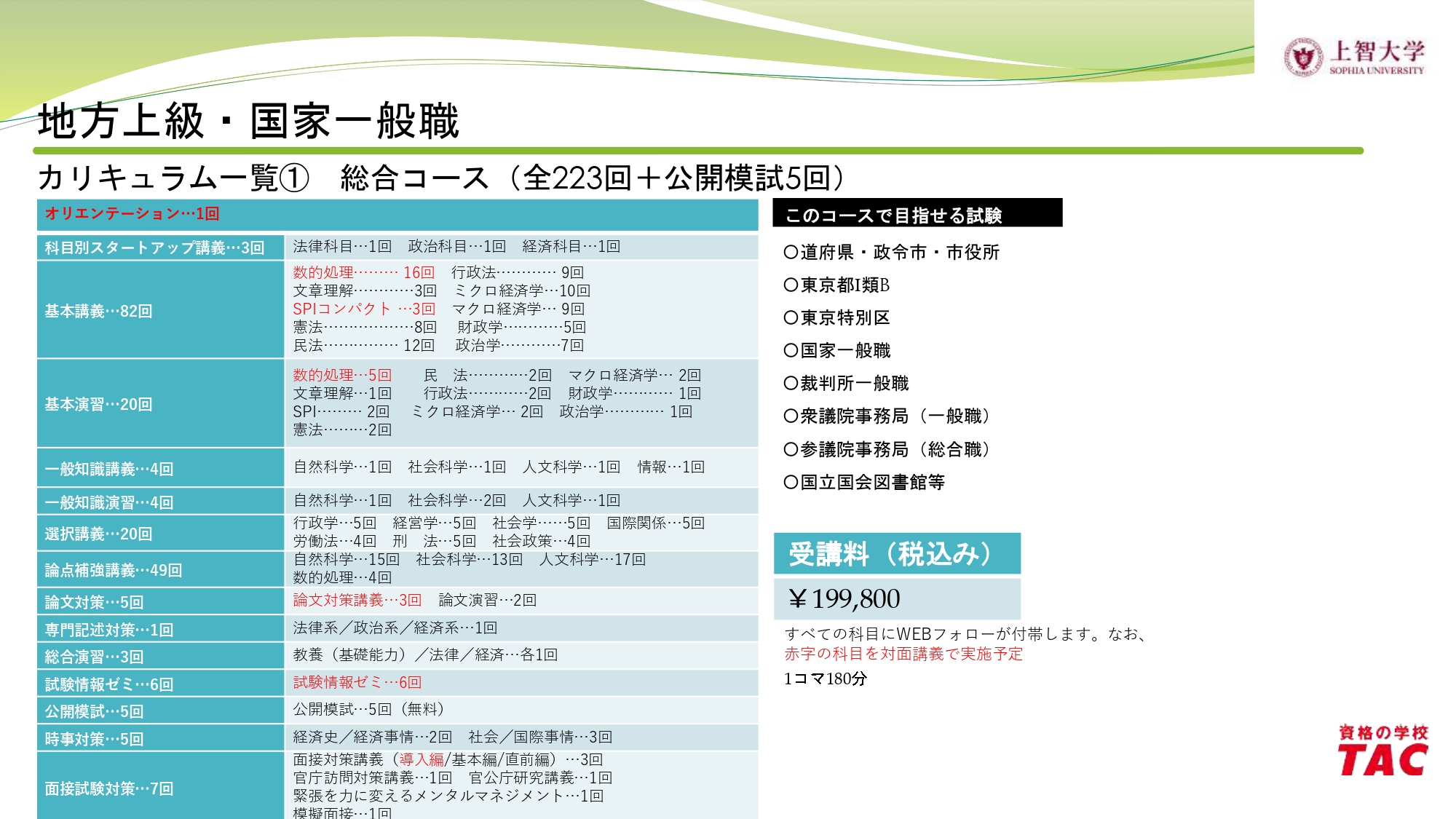公務員試験対策講座カリキュラム(総合コース・教養コース)