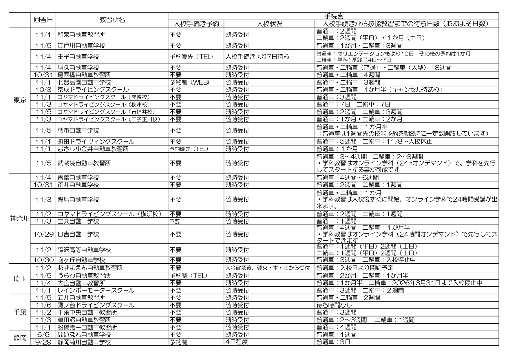 上智大学提携校自動車教習所 待ち時間のご案内(2025年9月)
