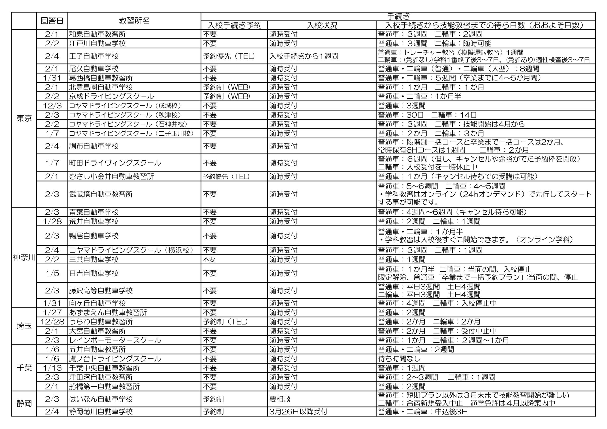 上智大学提携校自動車教習所 待ち時間のご案内(2026年2月)