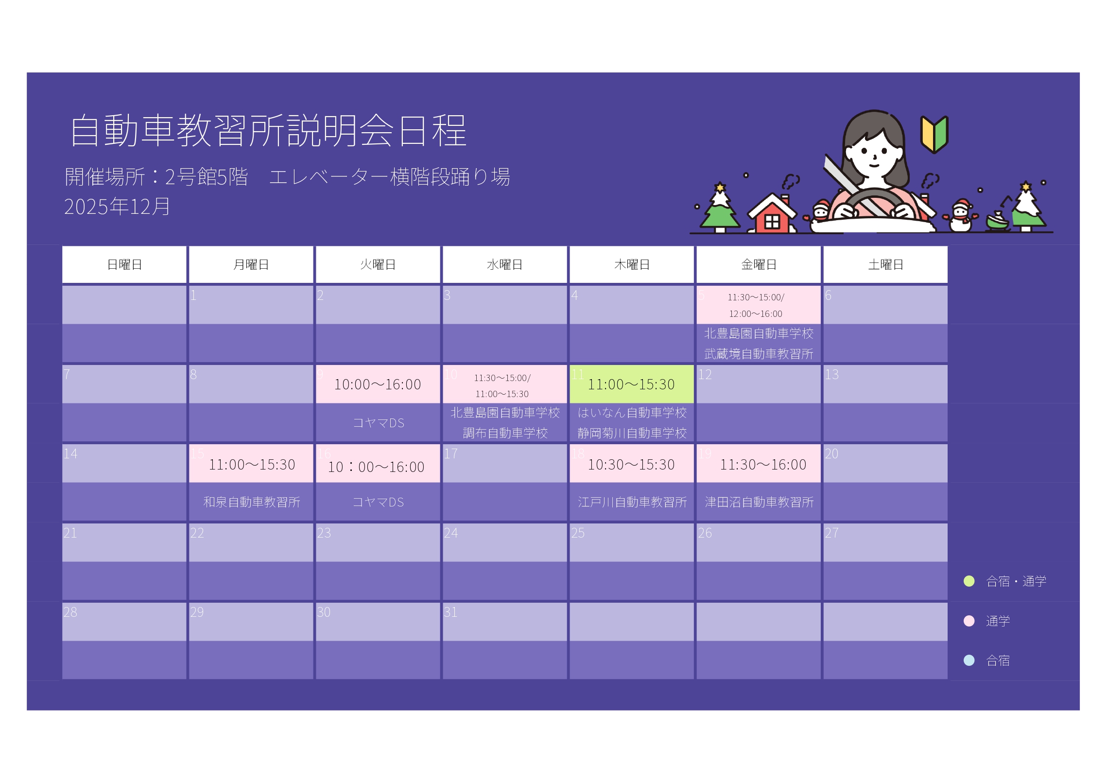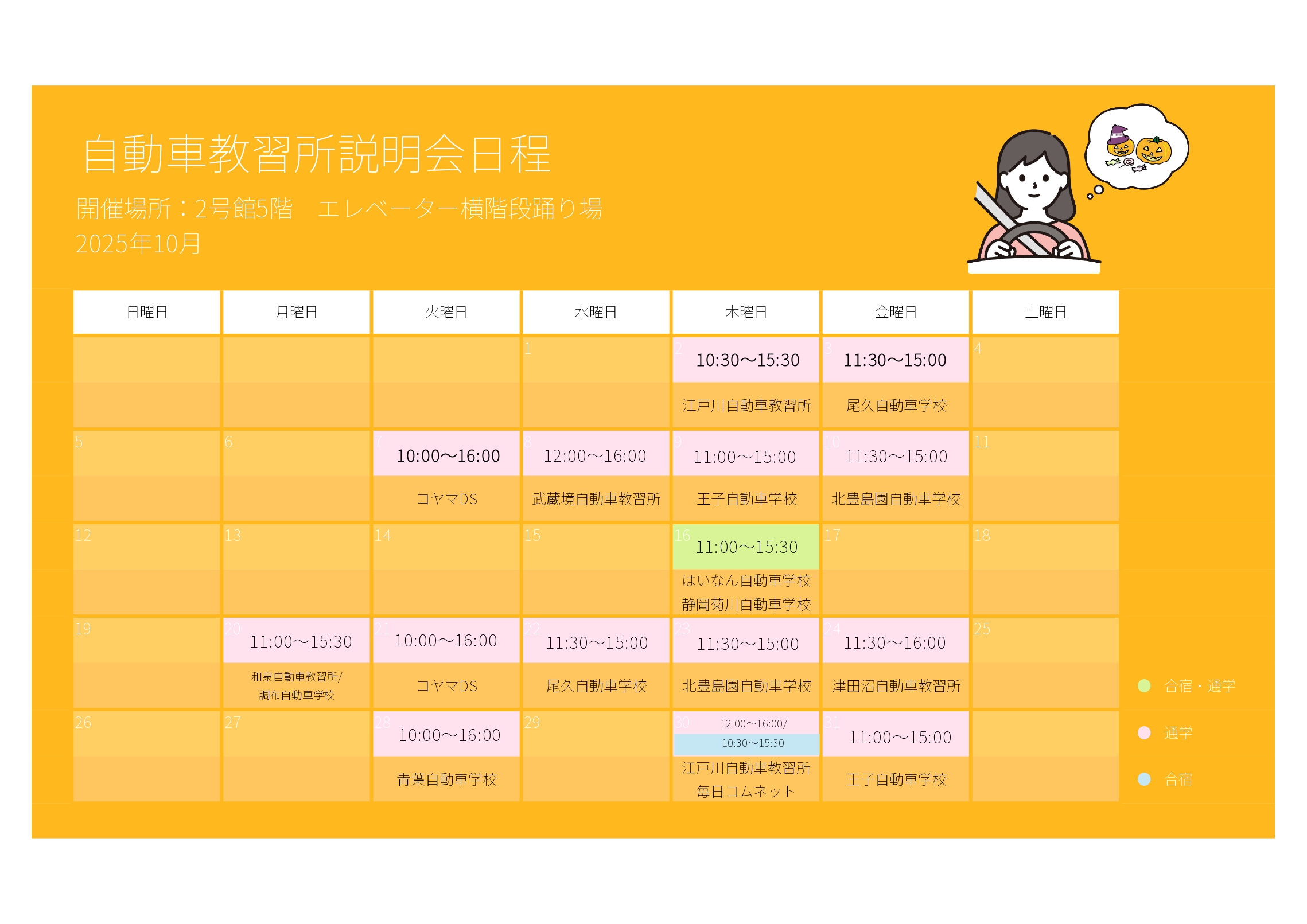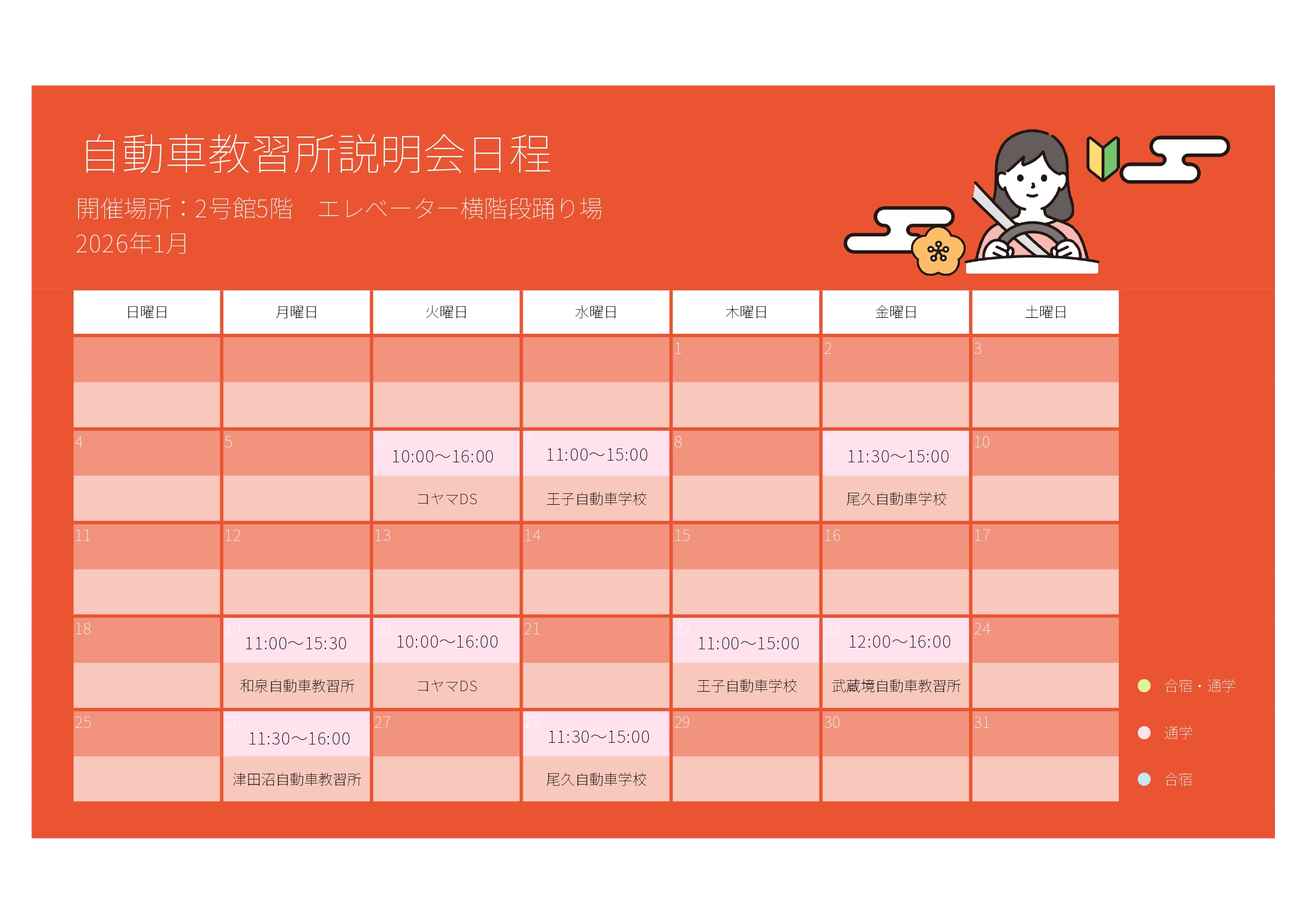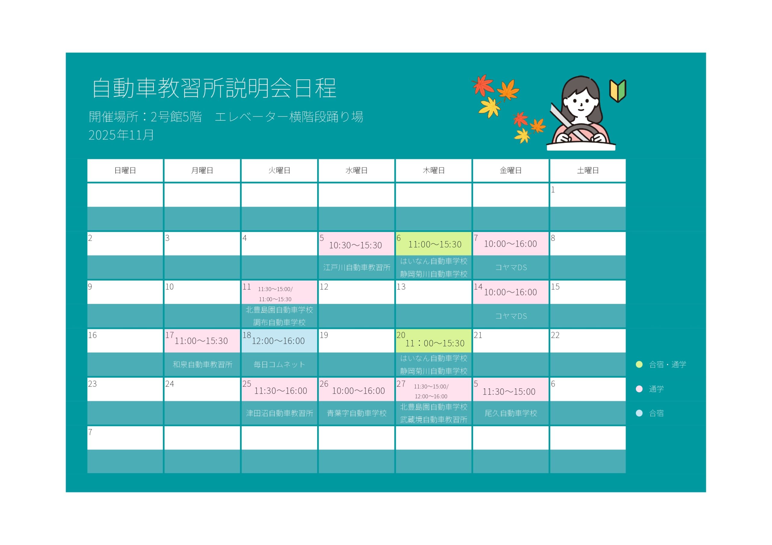 自動車教習所 上智大学提携校 学内説明会日程のご案内
