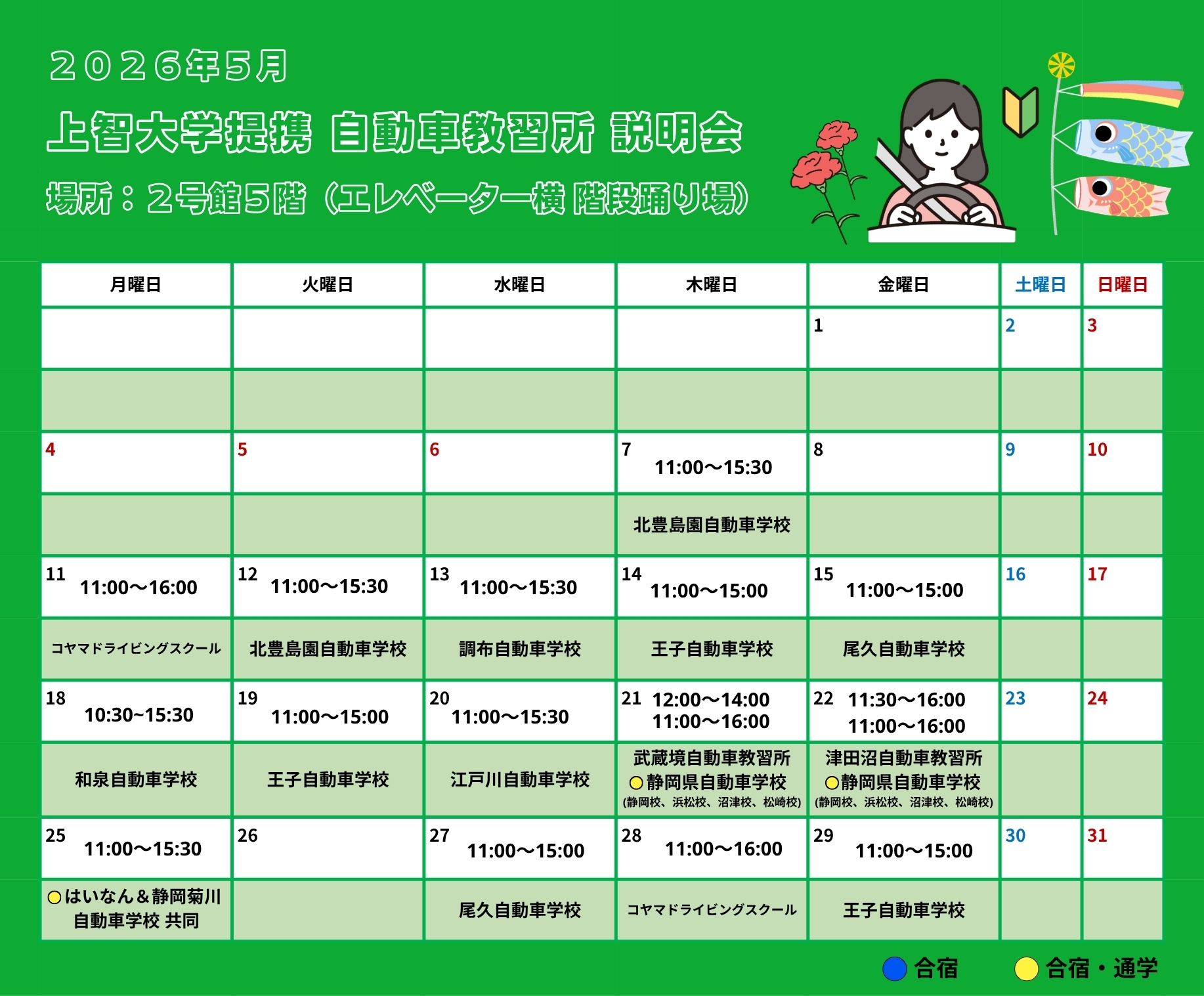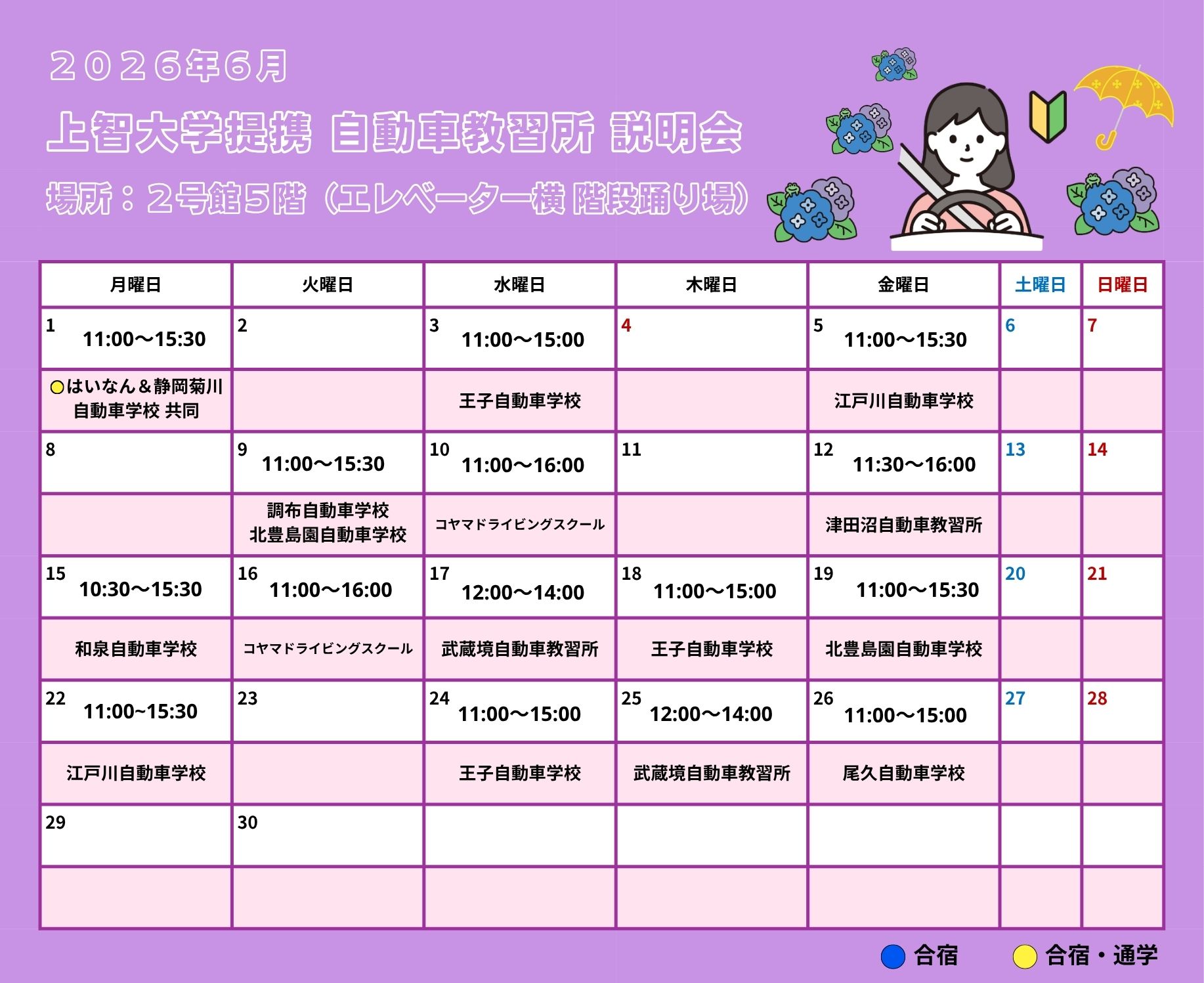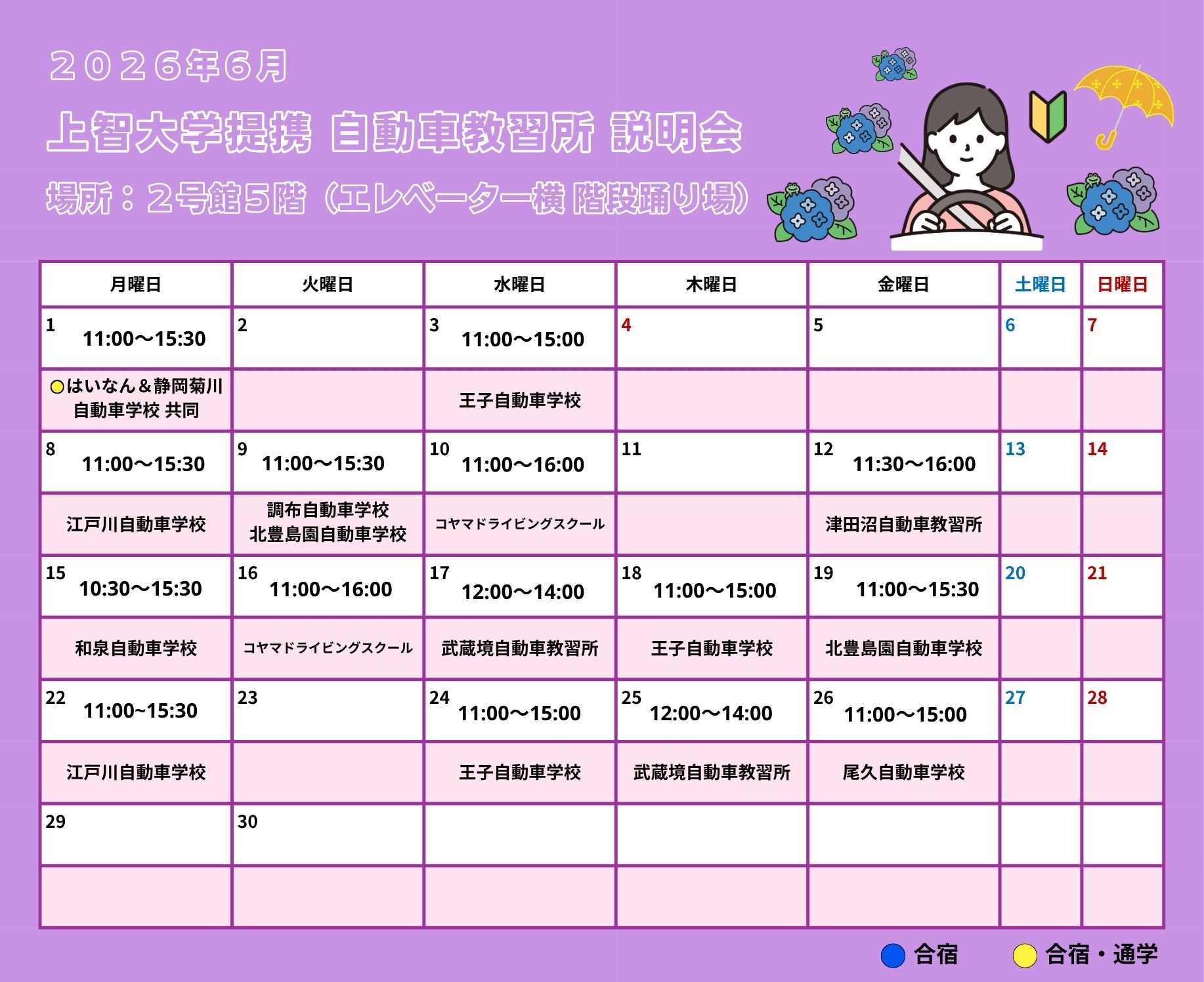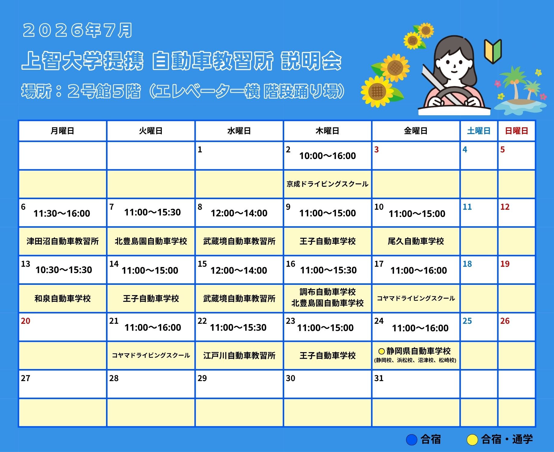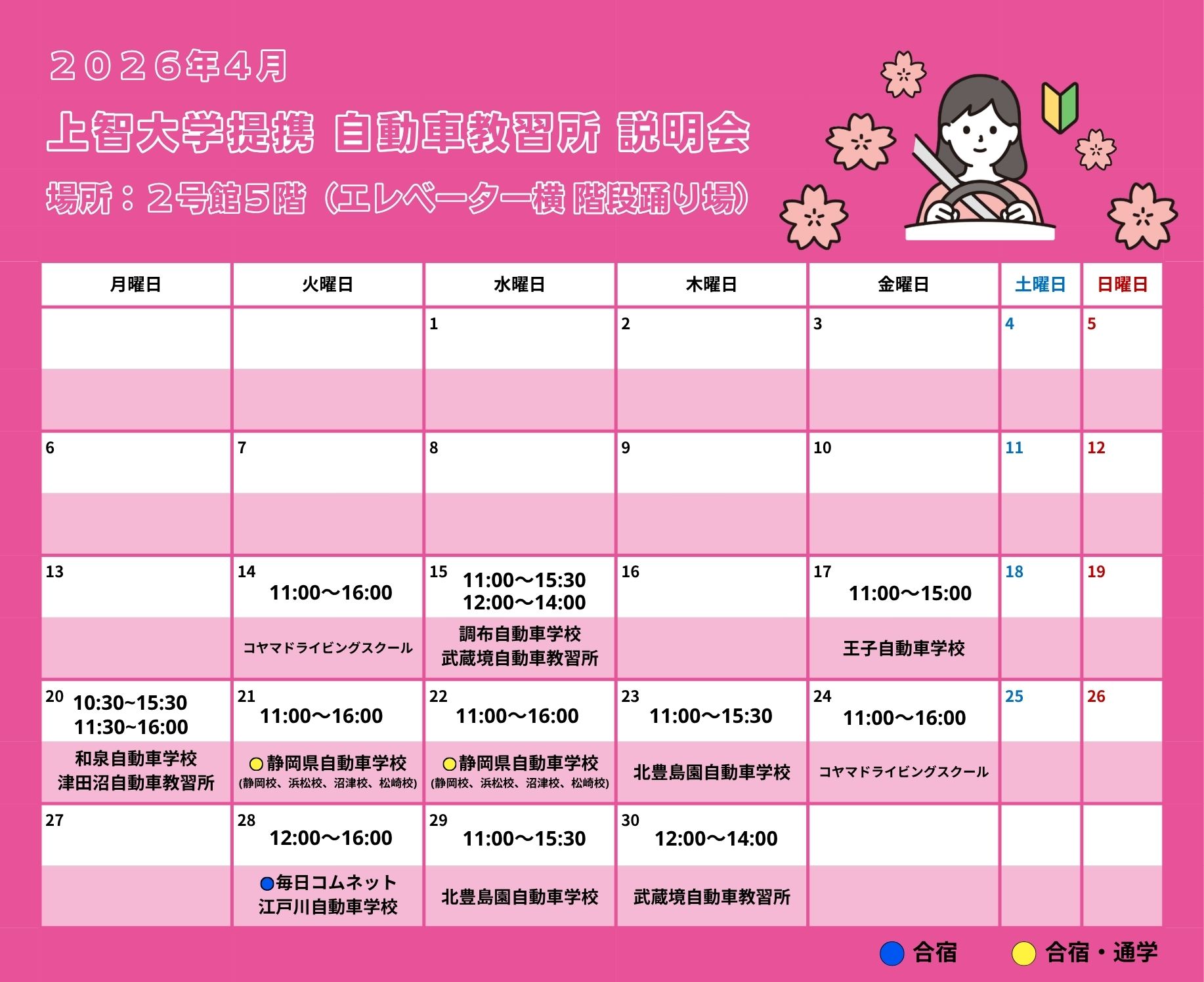 自動車教習所 上智大学提携校 学内説明会のご案内