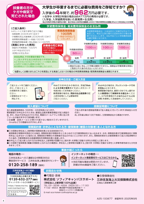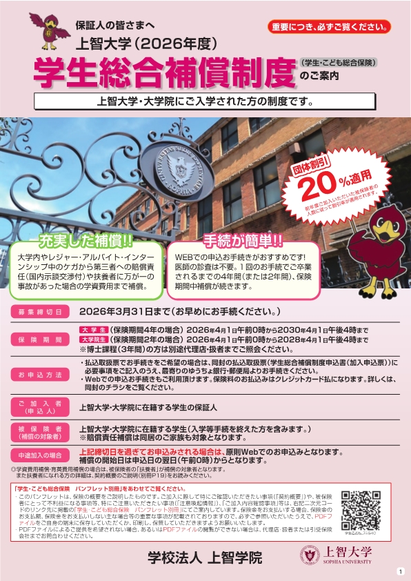 【2026年度ご入学向け】学生総合補償制度(学生・こども総合保険) パンフレット