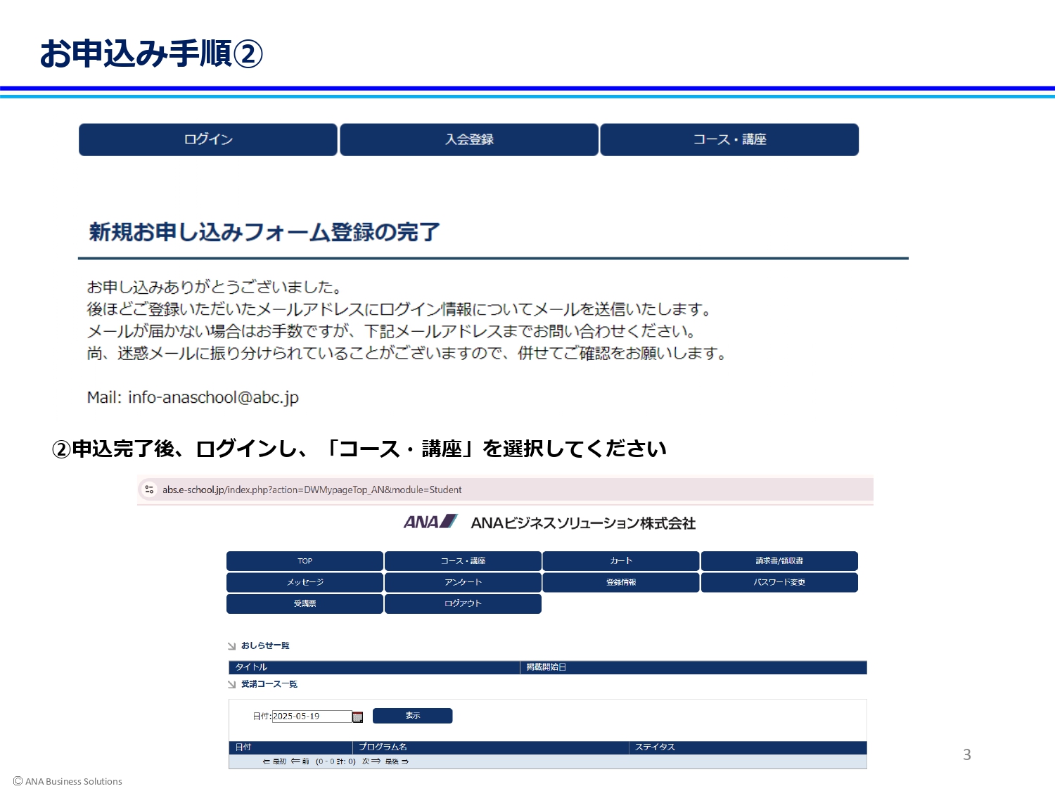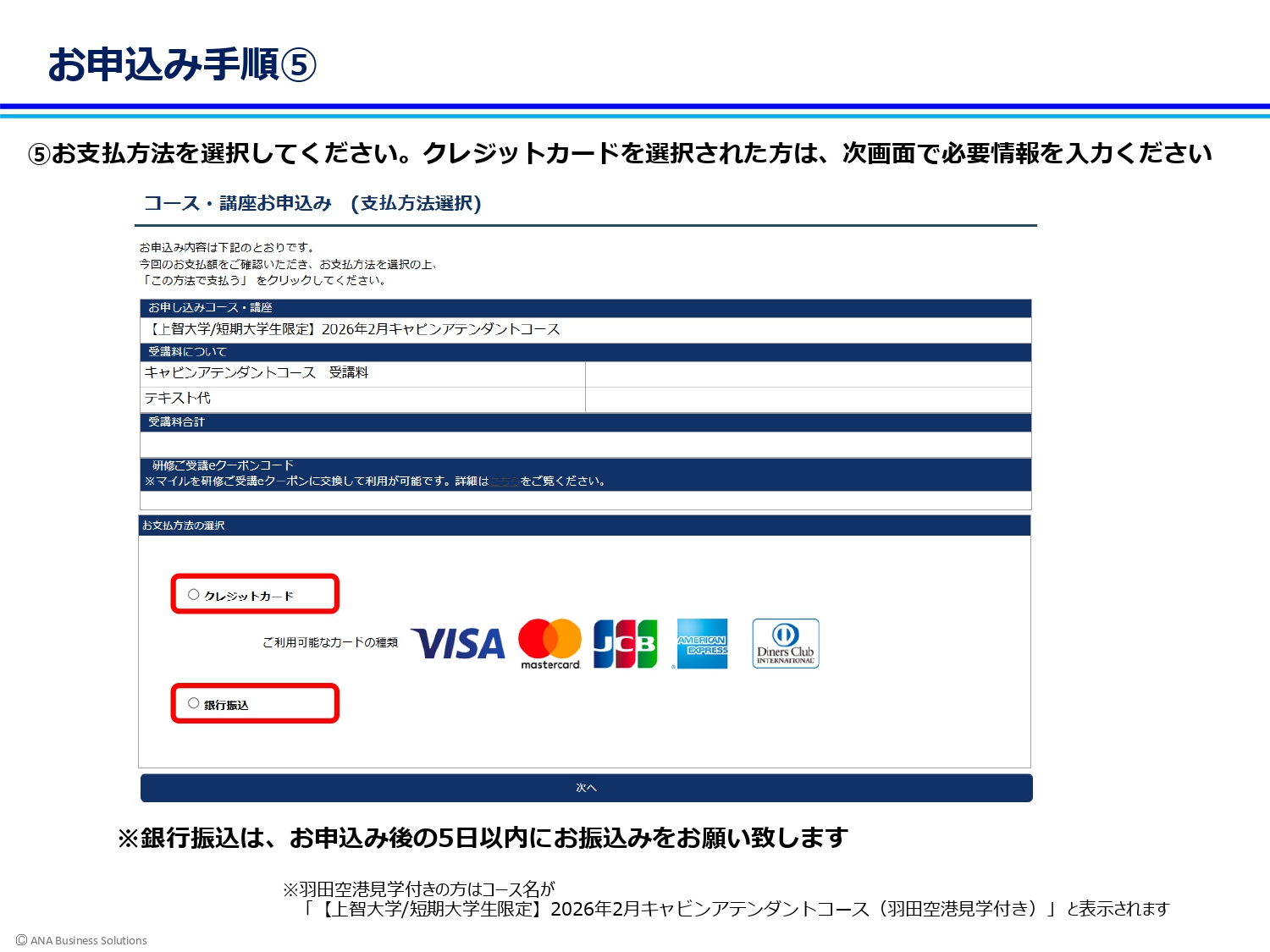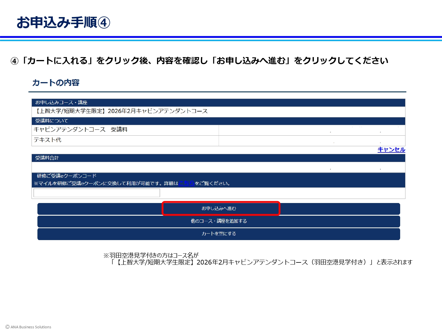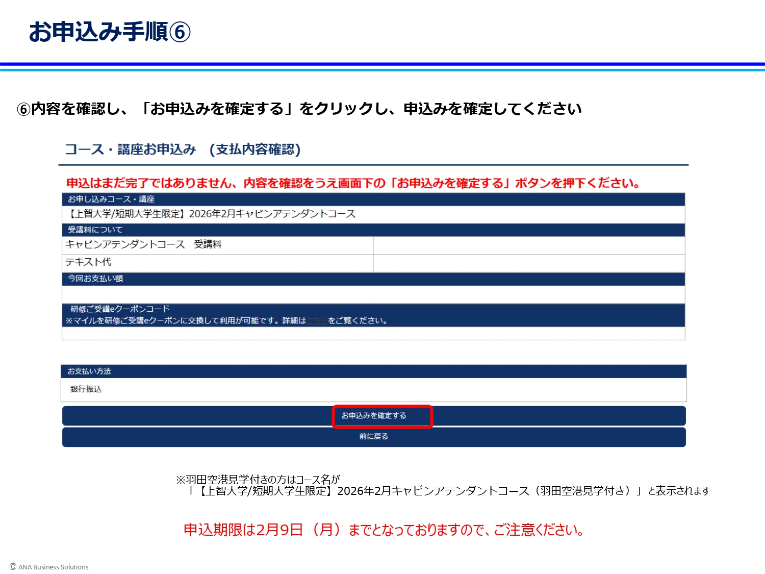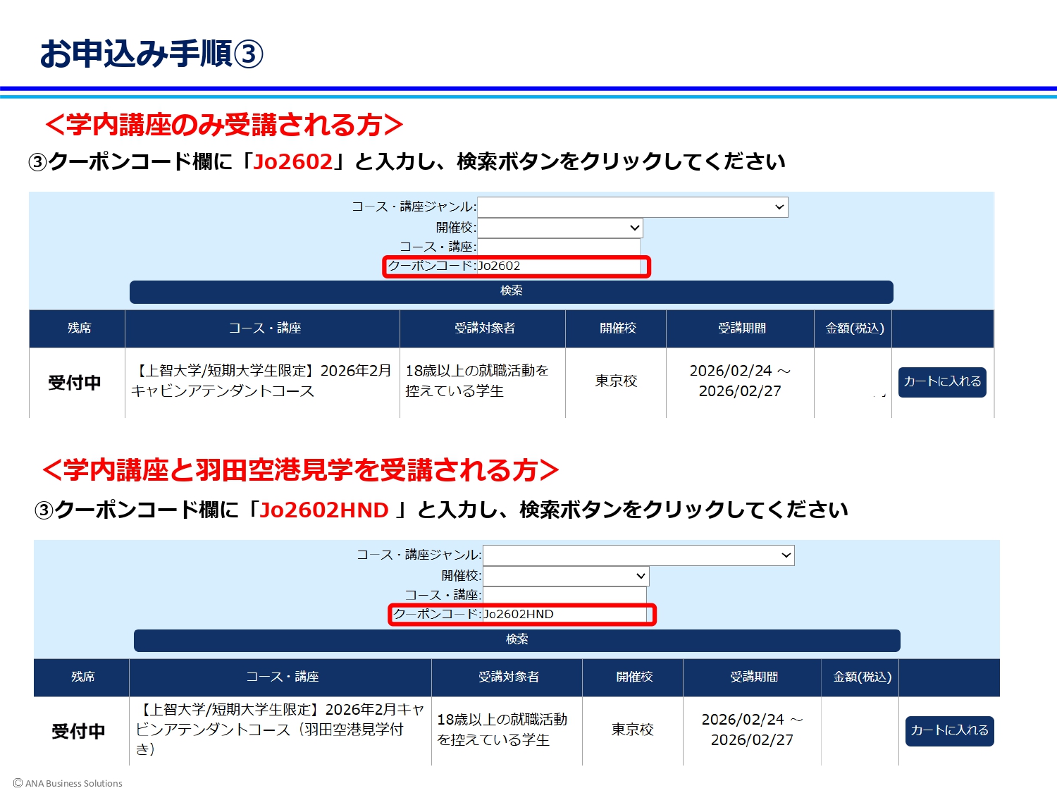 【ANA】キャビンアテンダントコース(学内講座)お申込方法のご案内
