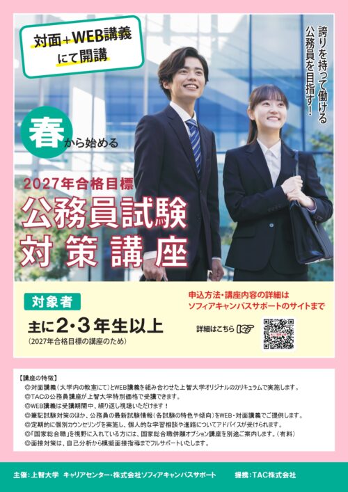 資格の学校TACのノウハウを取り入れた上智大学オリジナル公務員試験対策講座をご案内します。